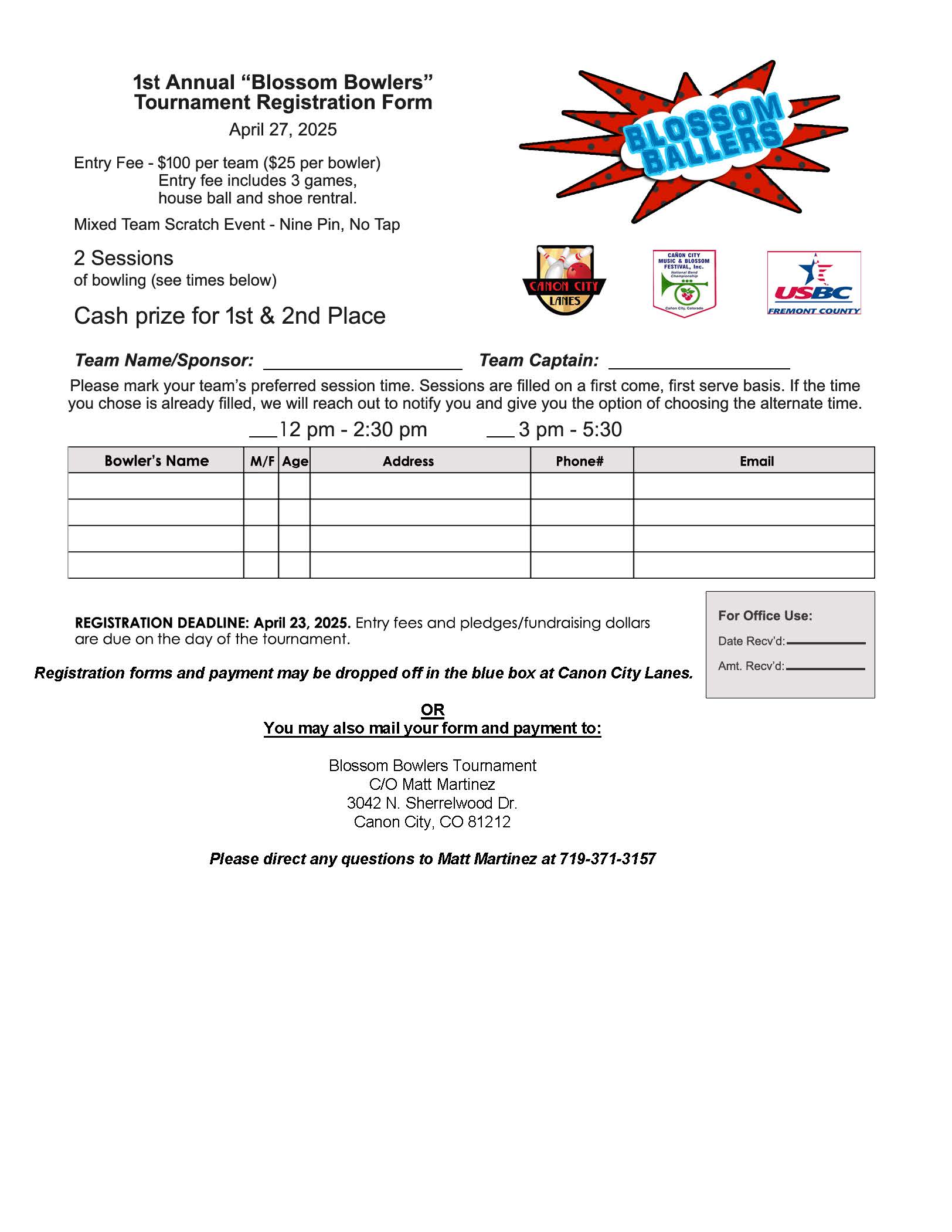 Sunday, April 27 | 12pm and 3pm | Cañon City Lanes